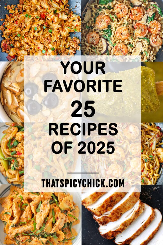 A look back on our readers’ favorite and most popular new recipes in 2025 on That Spicy Chick. It was an incredibly delicious year with easy pasta dinners, healthy breakfasts, high protein cottage cheese recipes, LOTS of noodles and more!