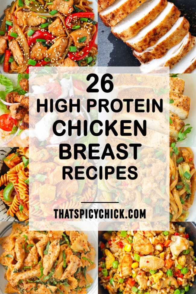 A collection of 26 high protein chicken breast recipes that are easy to make, healthy and delicious! Whether if you’re looking for meal prep ideas, high protein chicken pastas, easy chicken noodles, or simple healthy chicken fried rice, these flavorful recipes are great for lunch or dinner and will keep you energized and satisfied!